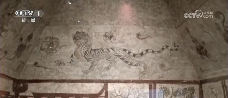 太原市文物考古研究院文物考古研究所副所長 劉?。?/strong>墓室四壁畫的是樹下老人圖,還有一個比手勢,就和咱們今天的“耶”(很像)。