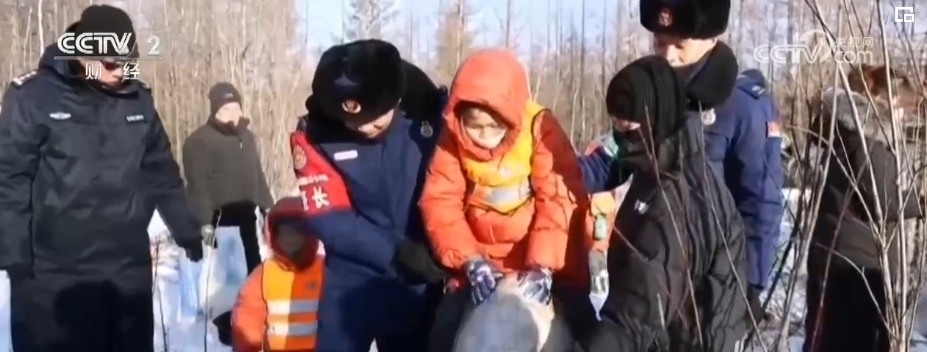 在馴鹿園里,“小荔枝”們近距離與馴鹿接觸,在皚皚白雪地里撒歡兒,坐在雪圈上玩得那叫一個(gè)歡實(shí)。