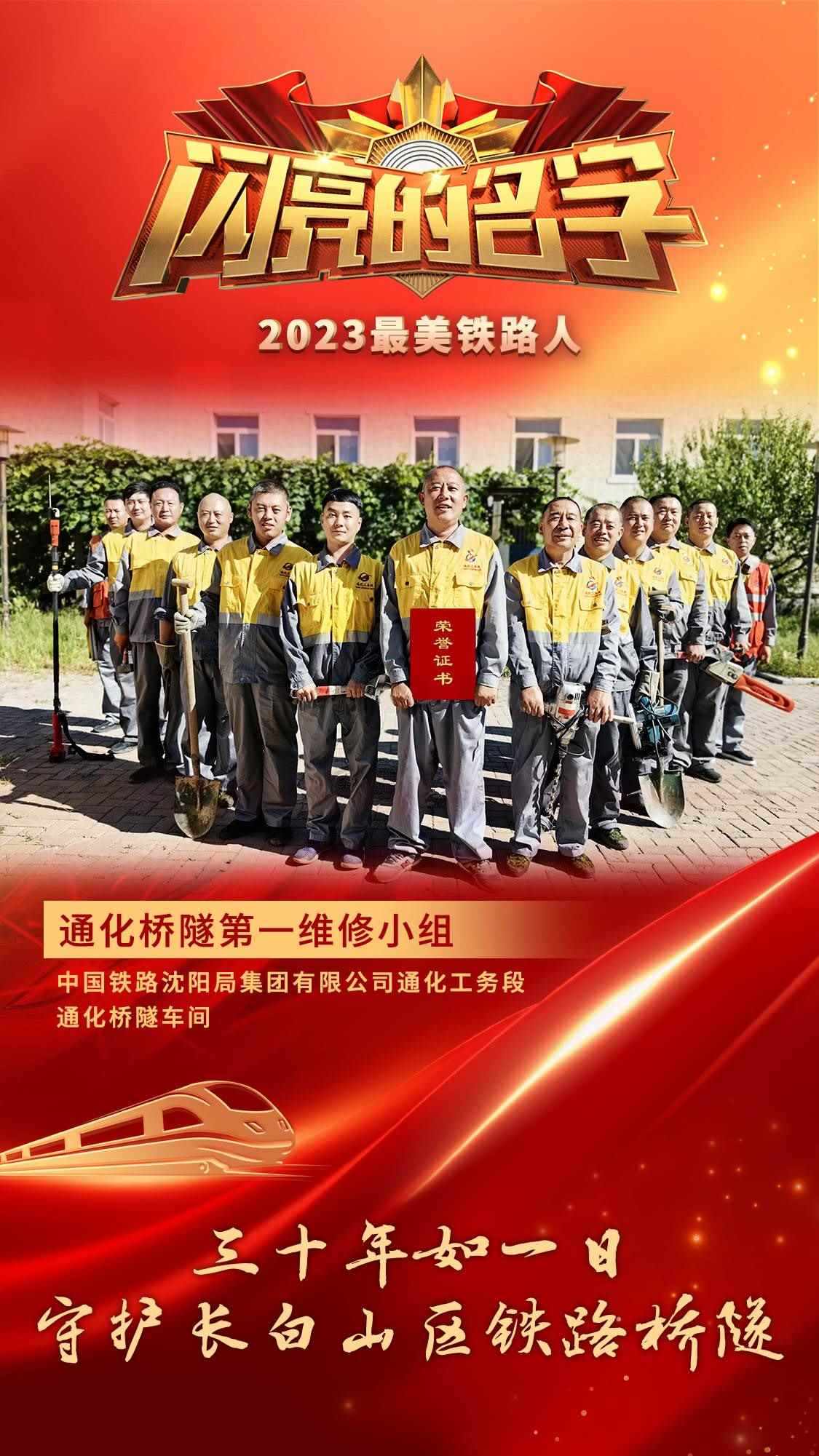 獲得2023年“最美鐵路人”稱號的10名個人和1個集體分別是蔣濤、王庭虎、張華、李軍、王笑冰、米爾班?艾依提、斯朗旺扎、馬小利、陳燕平、朱少銘,以及通化橋隧第一維修小組。