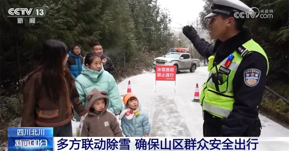 四川綿陽(yáng)北川羌族自治縣近日迎來(lái)低溫降雪天氣,山區(qū)路段大范圍降雪和道路結(jié)冰現(xiàn)象明顯,為確保群眾往返交通順暢安全,當(dāng)?shù)毓膊块T組織基層民警在重要路口設(shè)卡執(zhí)勤,維護(hù)交通秩序。交警在各路段有序開(kāi)展除雪防滑作業(yè),清掃路面積雪和冰塊。