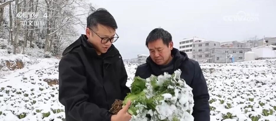 在貴州畢節(jié)螺絲村蔬菜基地,田間地頭白茫茫一片。為應(yīng)對低溫凝凍天氣,當?shù)剞r(nóng)技人員現(xiàn)場查看蔬菜長勢,為農(nóng)戶講解蔬菜防凍知識,指導(dǎo)做好防寒抗凍措施。