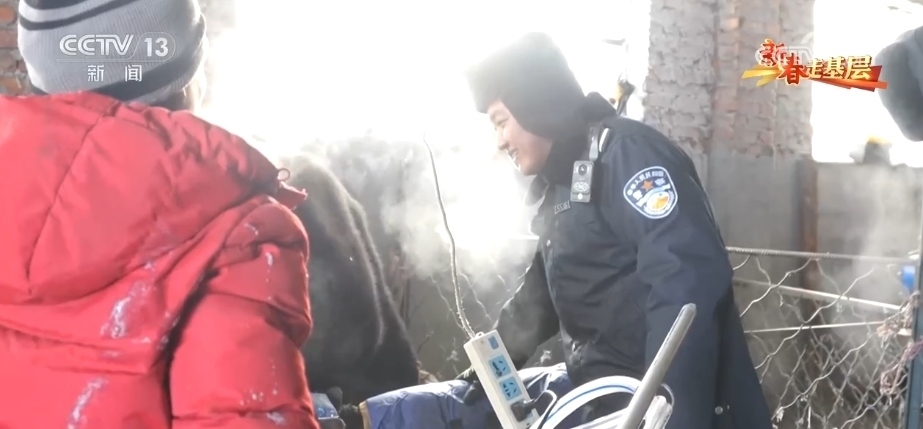 我們在采訪期間,還碰上了在冰雪路段剎車失靈導(dǎo)致側(cè)翻的兩位過客。驚魂未定的兩人被路過的轄區(qū)民警帶到了馬背警隊,阿其圖一邊安頓二人吃飯休息,一邊幫他們救援拖車。
