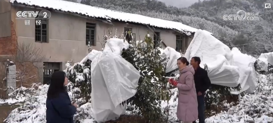 受冷空氣影響,近段時間,福建三明市溫度持續(xù)走低。在將樂縣漠源鄉(xiāng),3萬多株西柚果樹被大雪覆蓋,容易造成果樹枝條壓彎折斷,出現(xiàn)局部凍害。當?shù)亟M織人員到現(xiàn)場指導(dǎo)企業(yè)做好防寒防凍工作,保障果樹安全度過本輪寒潮。