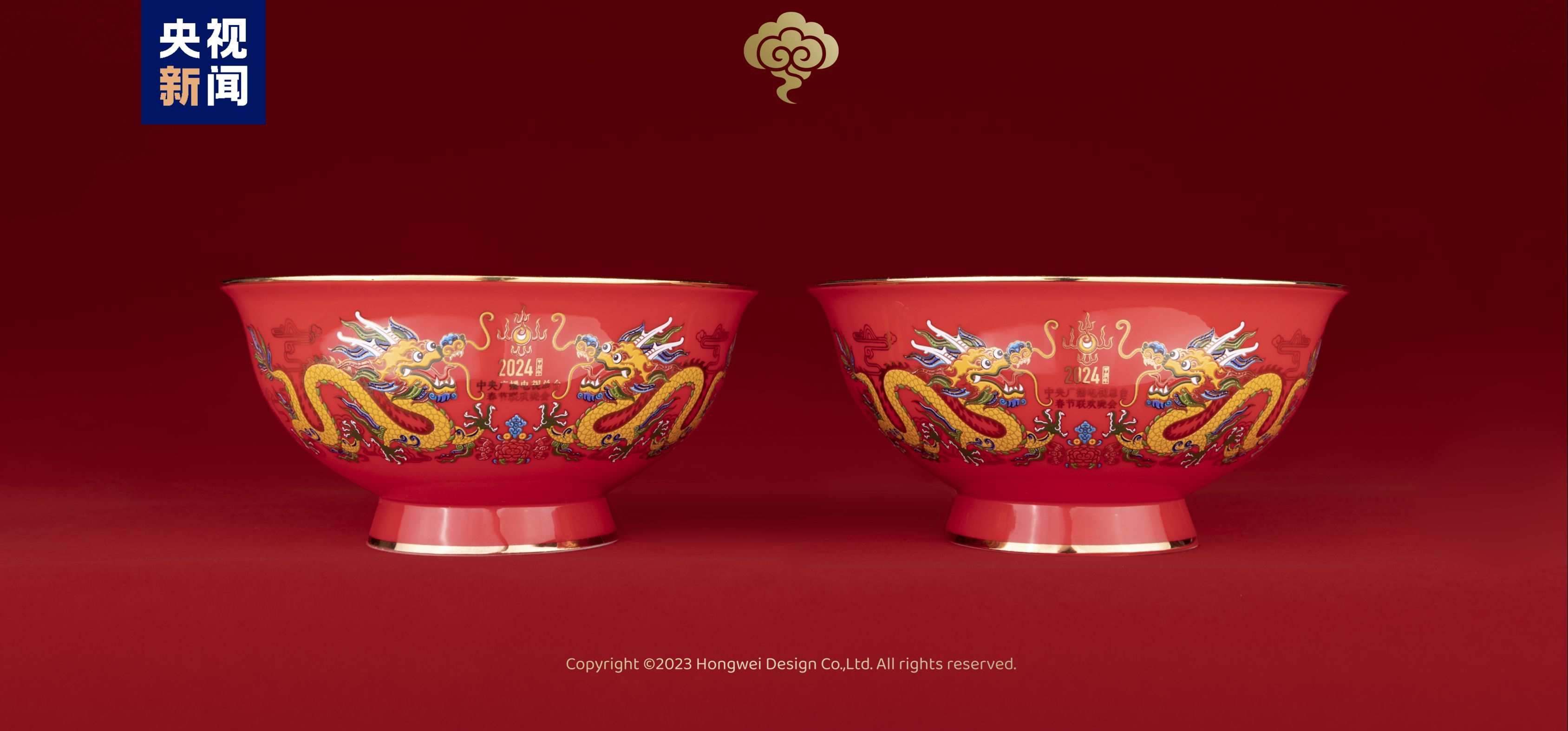 總臺(tái)文創(chuàng)的龍碗主畫面取自中國民間吉祥裝飾圖案“雙龍戲珠”,采用對稱型構(gòu)圖,寓意富貴吉祥,幸福安康。龍碗色彩鮮艷明快,烘托出民間新年的喜慶氛圍。