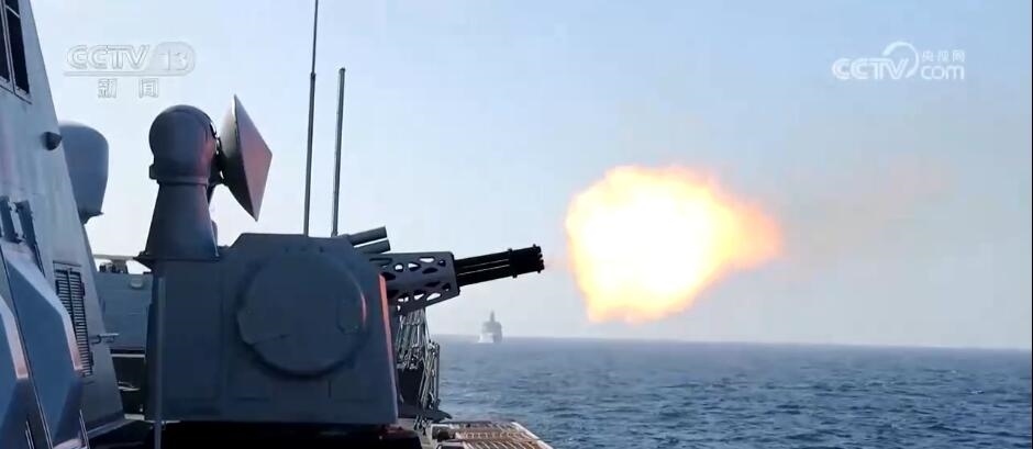 編隊(duì)剛到達(dá)指定海域,“戰(zhàn)斗”隨即打響。指揮員密切關(guān)注戰(zhàn)場(chǎng)態(tài)勢(shì)、調(diào)整艦艇航行狀態(tài),隨時(shí)準(zhǔn)備抗擊來襲目標(biāo)?;鹂嘏_(tái)操作手穩(wěn)穩(wěn)握住操作桿,牢牢鎖定目標(biāo)、校正射擊諸元,做好隨時(shí)抗擊準(zhǔn)備。待靶機(jī)進(jìn)入有效射程后,主、副炮接續(xù)開火,成功命中目標(biāo)。