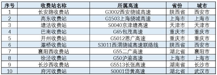 表 春節(jié)易擁堵緩行收費(fèi)站