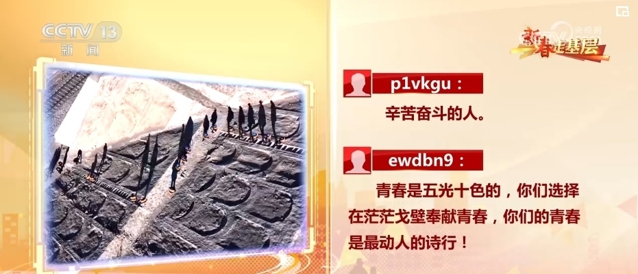 《新春走基層·阿爾金山無人區(qū)的青春之歌》播出后,網(wǎng)友們被這群在無人區(qū)工作的青年人感動(dòng)。有網(wǎng)友說:“辛苦奮斗的人?!币灿芯W(wǎng)友為他們的奉獻(xiàn)點(diǎn)贊,說:“青春是五光十色的,你們選擇在茫茫戈壁奉獻(xiàn)青春,你們的青春是最動(dòng)人的詩行!”