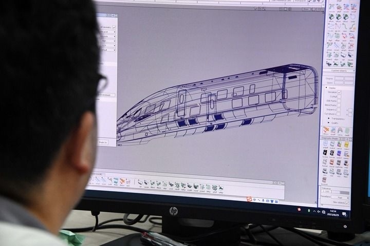 2023年8月29日,中車青島四方設(shè)計部門工作人員在進行車輛框架設(shè)計。新華社記者 李紫恒攝