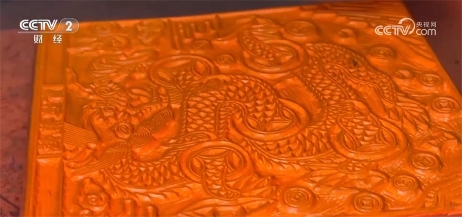 平陽(yáng)木版年畫(huà)非遺傳承人 王軍:我現(xiàn)在手上拿的這一張就是龍年主推的一個(gè)福字年畫(huà),主要以平陽(yáng)木版年畫(huà)最傳統(tǒng)的圖案,以福字為主,突出龍的元素,最難的就是龍的龍鱗、龍須,線條特別細(xì),雕刻的時(shí)候特別難。