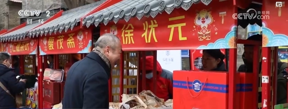 線上有“網(wǎng)上年貨節(jié)”, 線下有2024全國“老字號嘉年華”。在山東淄博,“老字號國貨潮品年貨大集”在周村古商城鳴鑼開市,匯集了淄博50余家老字號企業(yè)300余種產(chǎn)品。
