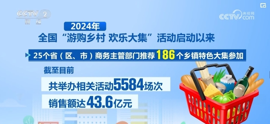 記者從商務(wù)部獲悉,2024年全國“游購鄉(xiāng)村 歡樂大集”活動啟動以來,25個?。▍^(qū)、市)商務(wù)主管部門推薦186個鄉(xiāng)鎮(zhèn)特色大集參加。截至目前,共舉辦相關(guān)活動5584場次,銷售額達43.6億元。