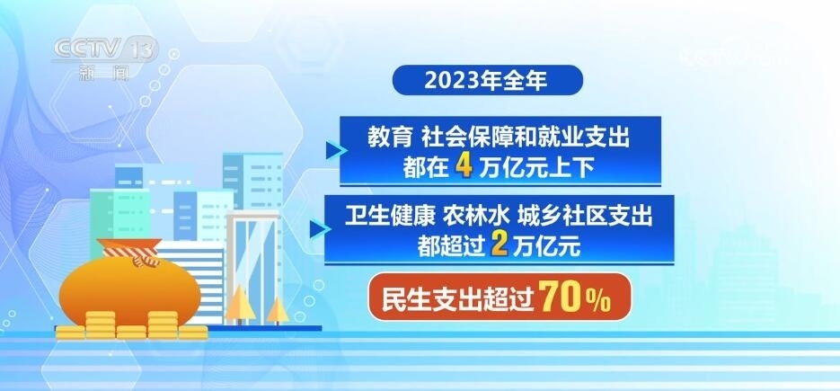 那么,2023年超過27萬億元的錢都花到了哪些方面呢?根據(jù)最新公布的數(shù)據(jù),去年全年,教育、社會(huì)保障和就業(yè)支出都在4萬億元上下,衛(wèi)生健康、農(nóng)林水、城鄉(xiāng)社區(qū)支出都超過了2萬億元,粗粗算一下將近15萬億元,也就是說,民生支出超過了70%。