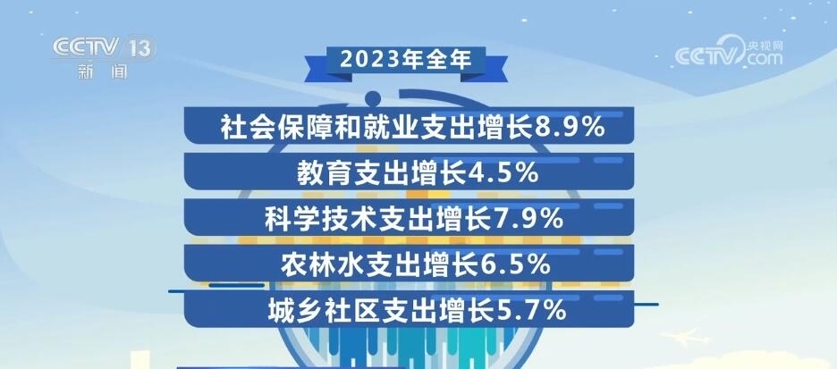 在我國,民生投入不僅總量大,而且增速也很可觀。比如2023年全年,社會(huì)保障和就業(yè)支出增長8.9%,教育支出增長4.5%,科學(xué)技術(shù)支出增長7.9%,農(nóng)林水支出增長6.5%,城鄉(xiāng)社區(qū)支出增長5.7%。