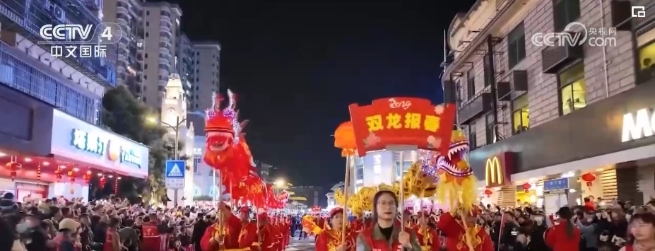 這幾天在廈門同安,盛大的傳統(tǒng)踩街民俗活動與古城燈會同步開啟。舞龍、舞獅、腰鼓隊(duì)等巡游隊(duì)伍從同安城中心出發(fā),表演者們身著盛裝、手持道具,先后經(jīng)過同安鐘樓、同安縣衙舊址等地,與市民游客熱情互動。