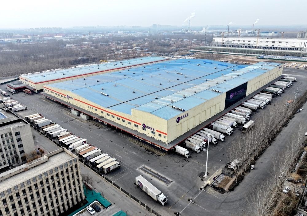 2024年2月4日拍攝的河北永清經(jīng)濟(jì)開發(fā)區(qū)的圓通速遞北方總部基地(無(wú)人機(jī)照片)。新華社記者 王曉 攝