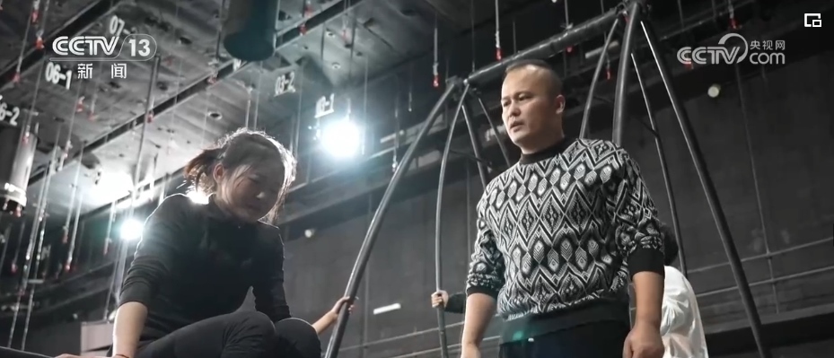 今年14歲的徐朵朵是第一次參加春晚,她需要在在雙浪橋上做出高難度的騰挪、翻轉(zhuǎn)等動(dòng)作,后空翻三周對(duì)她來說是一個(gè)不小的挑戰(zhàn),每一次排練都是對(duì)體力與意志的雙重考驗(yàn)。
