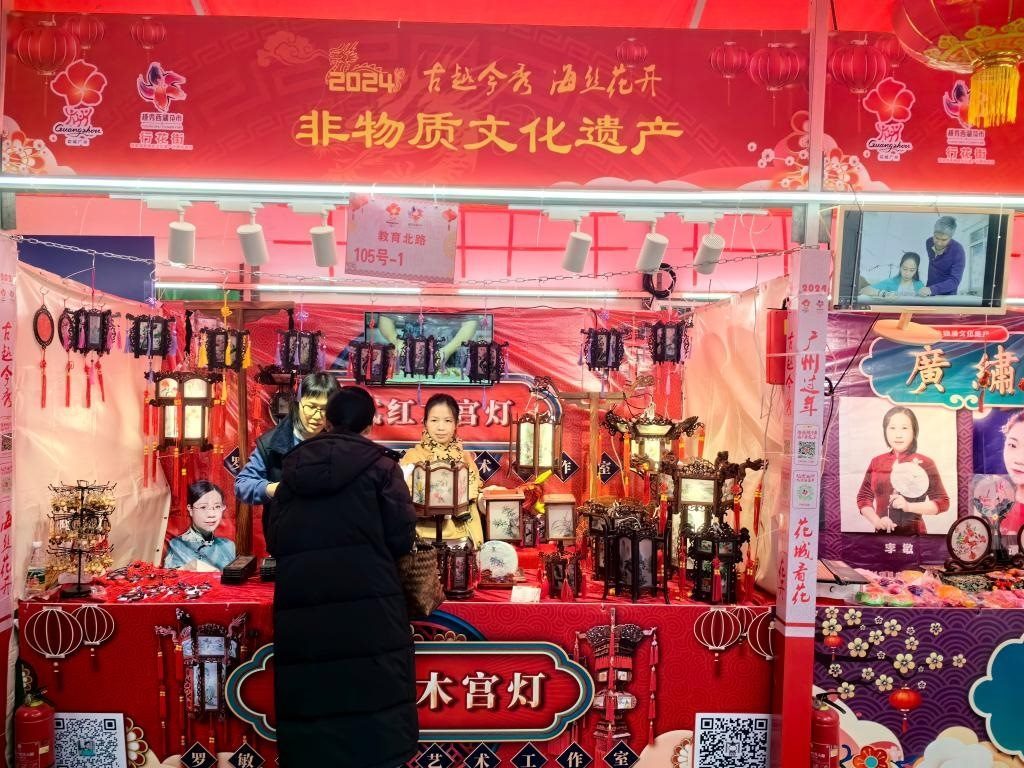 廣州欖雕、廣繡、打銅工藝、廣州醒獅、廣州餅印、粵語(yǔ)相聲、廣式紅木宮燈等8個(gè)非遺項(xiàng)目亮相花市,吸引游客駐足觀賞。現(xiàn)場(chǎng)展出的160多個(gè)賣花檔口中,粉色的劍蘭、潔白的百合、火紅的玫瑰、金燦燦的年橘等依舊是“搶手貨”,而具有“財(cái)源滾滾來(lái)”意頭的吊鐘花也得到不少市民的青睞。