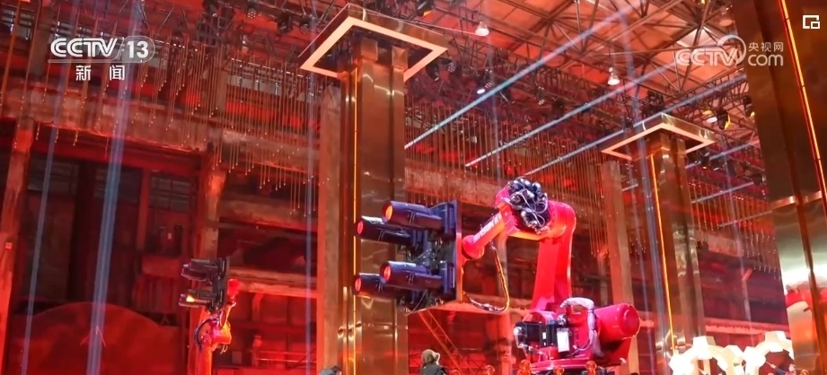 2024年中央廣播電視總臺(tái)春節(jié)聯(lián)歡晚會(huì)遼寧沈陽分會(huì)場上的8個(gè)重載工業(yè)機(jī)器人,原本是生產(chǎn)線上的重載工業(yè)機(jī)器人.春晚沈陽分會(huì)場導(dǎo)演組到達(dá)沈陽進(jìn)行第一次調(diào)研時(shí),就有了將這些機(jī)器人融入到舞臺(tái)的念頭。