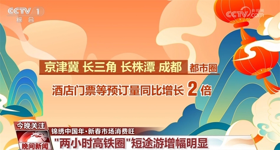 而在說走就走的短途游中,“兩小時(shí)高鐵圈”受到青睞。截至大年初一,春節(jié)假期“兩小時(shí)高鐵圈”短途游的搜索量同比增長7倍。從實(shí)際預(yù)訂情況看,京津冀、長三角、長株潭、成都都市圈等區(qū)域的酒店、門票等相關(guān)旅游產(chǎn)品預(yù)訂量同比增長2倍。