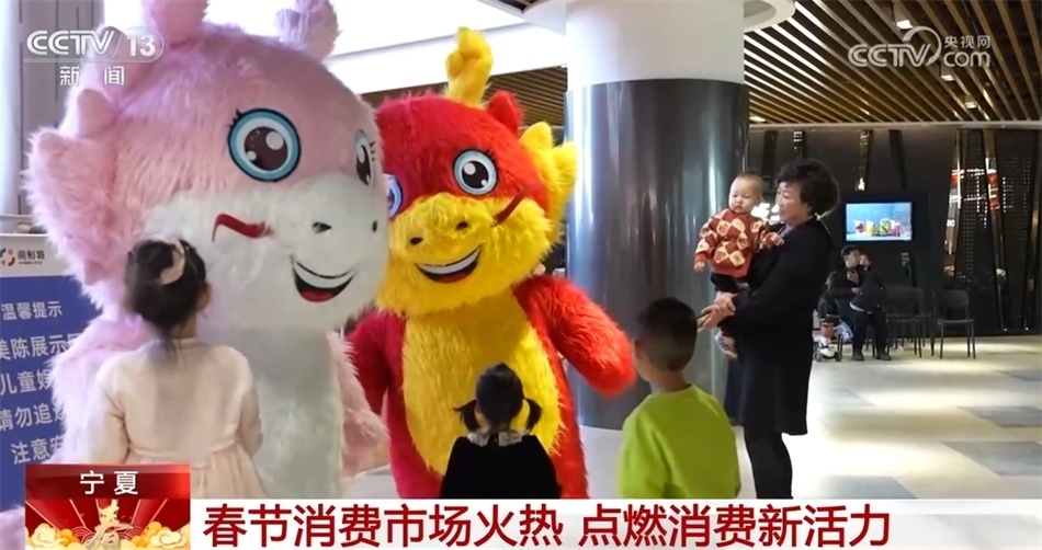 春節(jié)期間,寧夏也推出了一系列迎新春促消費(fèi)活動。在寧夏銀川市金鳳區(qū)的一家大型商業(yè)綜合體里,各種以龍為元素的裝扮讓整個(gè)商場里年味十足。