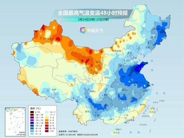 具體來(lái)看,14日隨著冷空氣主體抵達(dá),北方大部氣溫將出現(xiàn)明顯下滑,內(nèi)蒙古東部、吉林等地降溫10℃以上,15日,江淮、江南等地也會(huì)迎來(lái)10℃以上的“斷崖”式降溫。