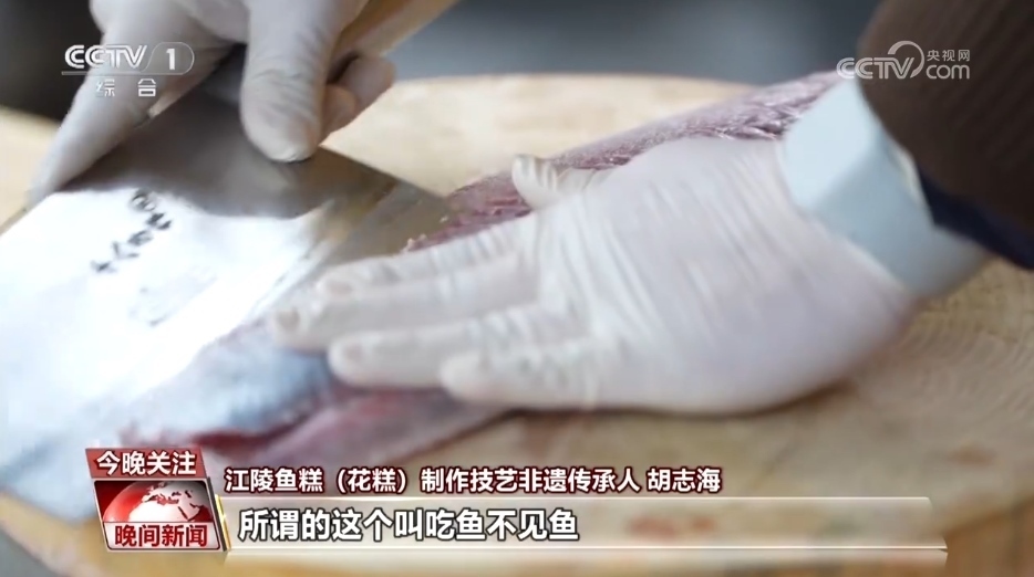 江陵魚糕(花糕)制作技藝非遺傳承人 胡志海:我們把這個(gè)魚紅全部要給它剔干凈,打出來的魚糕才會(huì)特別的潔白。剔干凈了之后,我們要把這個(gè)魚刺給它給剔掉。所謂的這個(gè)叫吃魚不見魚,也有魚糕香。