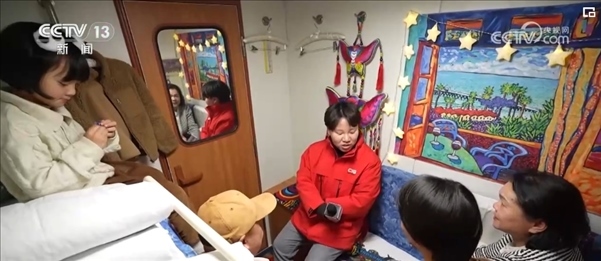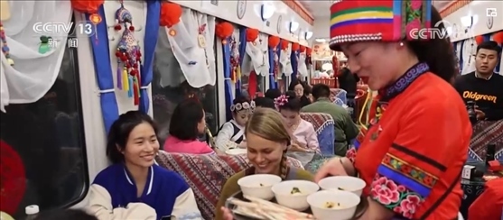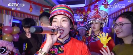 就在記者采訪時(shí),列車員邀請(qǐng)大家去一號(hào)車廂參加一個(gè)聯(lián)歡會(huì)。春節(jié)爆滿的車廂,讓他們也感受到了濃濃的年味兒。