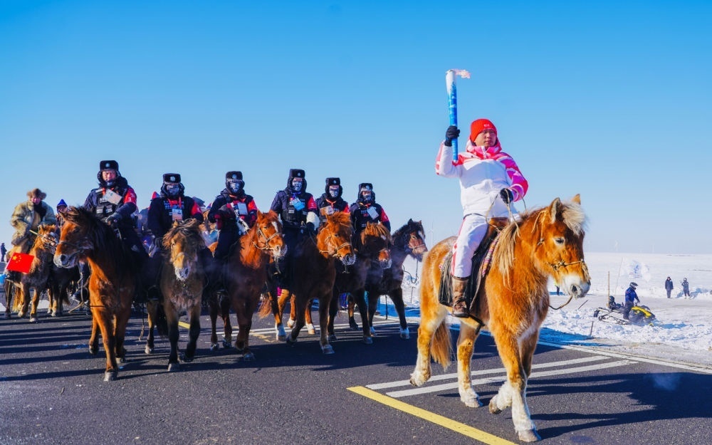 2024年2月3日,第十四屆全國冬季運(yùn)動會火炬?zhèn)鬟f活動在內(nèi)蒙古自治區(qū)呼倫貝爾市進(jìn)行,這是“十四冬”開幕前的最后一次火炬?zhèn)鬟f。新華社發(fā)(西日呼攝)