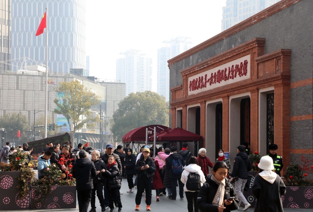 2024年2月10日,位于上海的中共一大紀(jì)念館舉辦賀新春活動,紀(jì)念館前游人眾多。新華社發(fā)