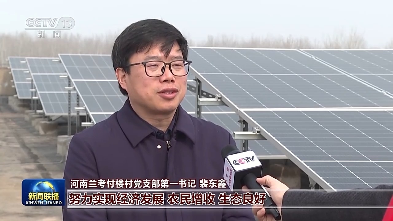 河南蘭考付樓村黨支部第一書記 裴東鑫:習(xí)近平總書記要我們?cè)诰G色發(fā)展中,努力實(shí)現(xiàn)經(jīng)濟(jì)發(fā)展、農(nóng)民增收、生態(tài)良好。我們大力實(shí)施了整個(gè)村莊的零碳化改造。現(xiàn)在我們?nèi)迥旯夥l(fā)電量超過120萬度,完全滿足我們整個(gè)村子的用電需求,我們村集體一年增收十幾萬元。