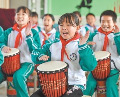 江西省樟樹市義成鎮(zhèn)中心小學學生在練習樂器演奏。目前,我國基礎教育普及水平總體達到世界中上行列。周 亮攝(影像中國)