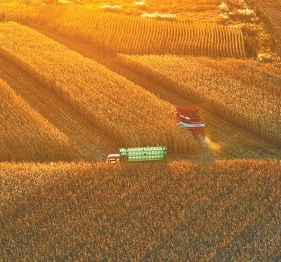 金秋時節(jié),黑龍江省雞西市田間地頭一派繁忙。2023年全國糧食總產量達到13908.2億斤,創(chuàng)歷史新高,實現(xiàn)“二十連豐”。孫樹寶攝(影像中國)