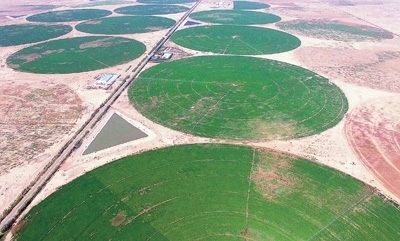 內蒙古自治區(qū)加快推進國土綠化,“三北”工程攻堅戰(zhàn)和三大標志性戰(zhàn)役進展順利。截至2023年底,累計完成造林556萬畝、種草1743萬畝、防沙治沙950萬畝。圖為烏蘭布和沙漠苜蓿種植基地。新華社記者 李云平攝