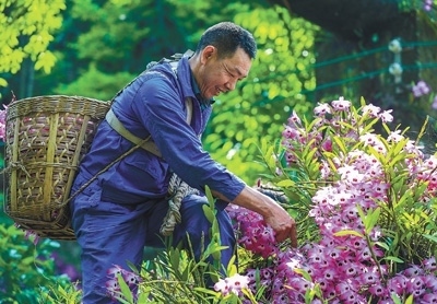 四川省瀘州市合江縣福寶鎮(zhèn)種植基地,村民在采摘金釵石斛鮮花。各地發(fā)展綠色生態(tài)農業(yè),積極打造特色農產品優(yōu)勢品牌,助推鄉(xiāng)村全面振興。李貴平攝(影像中國)