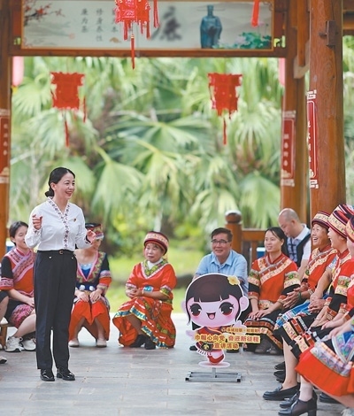廣西壯族自治區(qū)桂林市恭城瑤族自治縣,黨員在“桂姐姐”課堂上進行宣講。近年來,當?shù)匾劳行聲r代文明實踐中心,組織“桂姐姐”宣講隊,傳播黨建、法律和婦女兒童權益保障等知識。各地新時代文明實踐中心成為精神文明建設的重要陣地,在加強思想政治引領、培育社會文明風尚等方面發(fā)揮著重要作用。劉教清攝(人民視覺)