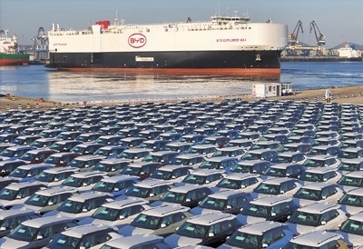 中國首艘由國內船企建造、專門用于國產新能源汽車出口的汽車運輸船“比亞迪開拓者1號”搭載新能源汽車從山東煙臺港啟航。2023年,中國新能源汽車產銷量均突破900萬輛,其中出口120.3萬輛,同比增長77.6%,成為經濟高質量發(fā)展中的一抹亮色。唐 克攝(影像中國)
