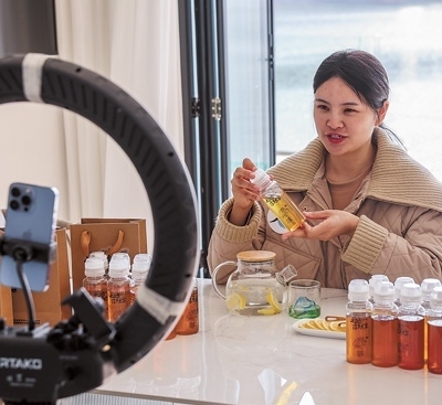 浙江省杭州市淳安縣一家民宿內,主播在進行“淳蜜共富”主題網絡直播。作為“高質量發(fā)展建設共同富裕示范區(qū)”,浙江推出各種政策促進城鄉(xiāng)均衡發(fā)展。新華社記者 徐 昱攝