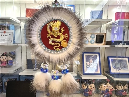 在“十四冬”的主媒體中心,多個(gè)玻璃展柜里的漢代陶罐、北魏陶俑、清代簪花木碗等文物,記錄并展現(xiàn)了呼倫貝爾民族交融史。此外,精美的太陽(yáng)花手工藝品、皮雕畫作、樺樹(shù)皮工藝品等非遺作品也吸引了許多人的目光。