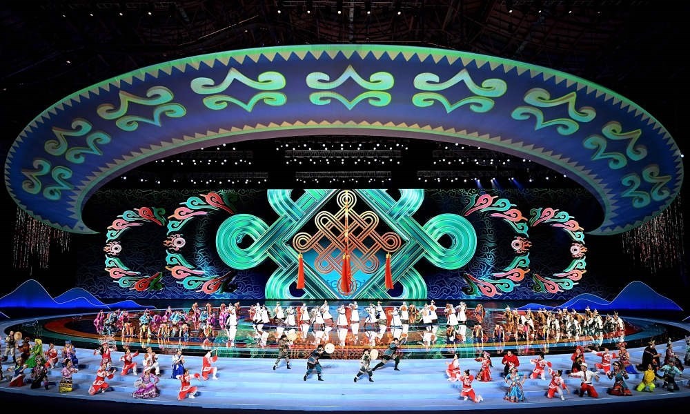 在開(kāi)幕式上演唱《新的起點(diǎn)》的歌手傲日其楞說(shuō):“歌詞和旋律中很多細(xì)節(jié)都在詮釋民族團(tuán)結(jié)和祖國(guó)昌盛,也通過(guò)強(qiáng)勁的旋律為‘十四冬’加油助陣?!睒?lè)隊(duì)安達(dá)組合表示,他們演唱的歌曲采用了長(zhǎng)調(diào)和呼麥的唱法,加上有力量感的編曲,來(lái)表現(xiàn)競(jìng)技體育奮勇向前的精神,同時(shí)通過(guò)女聲吟唱和柔美的旋律來(lái)表現(xiàn)各族人民團(tuán)結(jié)友愛(ài)、和諧共存的美好畫卷。