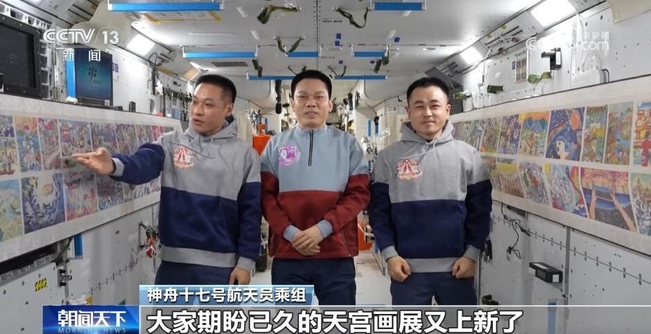 神舟十七號(hào)航天員乘組在鏡頭面前介紹“天宮畫(huà)展”時(shí)說(shuō):“全國(guó)各地的青少年朋友們,大家新年好!我們是神舟十七號(hào)航天員乘組,這里是咱們中國(guó)人自己的太空家園——中國(guó)空間站。分享一個(gè)好消息,大家期盼已久的天宮畫(huà)展又‘上新’了!”