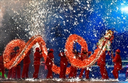 百龍競技,苗族“舞龍噓花”鬧元宵。