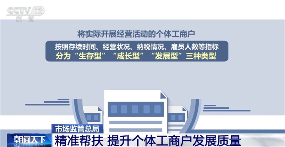 市場監(jiān)管總局相關負責人介紹,下一步將繼續(xù)采取措施,讓處于初創(chuàng)階段的“生存型”個體工商戶更好地“活下來”,讓處于穩(wěn)定經營階段的“成長型”個體工商戶“走得穩(wěn)”“行得遠”,讓處于持續(xù)壯大階段的“發(fā)展型”個體工商戶“做得強”。