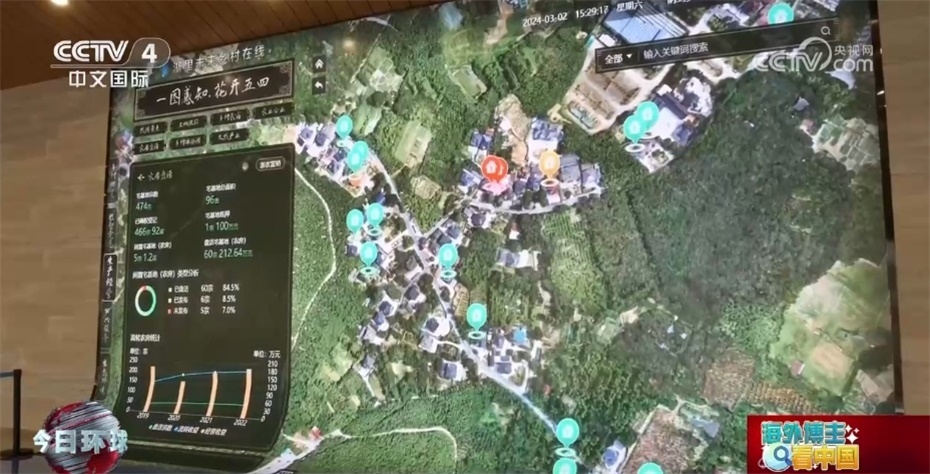五四村的村干部還帶來(lái)了更多驚喜:“帶你去看看我們整個(gè)村的數(shù)字鄉(xiāng)村是如何治理的。整個(gè)一張圖里面所展示的是我們整個(gè)村的發(fā)展。這個(gè)圖是2019年建設(shè)的,也是整個(gè)浙江省在五四村率先打造的‘一圖全面感知’,總共有全縣的各個(gè)部門(mén)58個(gè)、282類(lèi)數(shù)據(jù),總共有12個(gè)這樣的數(shù)據(jù)接口連入到了5個(gè)城市大腦應(yīng)用,形成了這樣一個(gè)時(shí)時(shí)可以感知農(nóng)村的生產(chǎn)、生活、生態(tài)詳情的數(shù)字化體系?!?