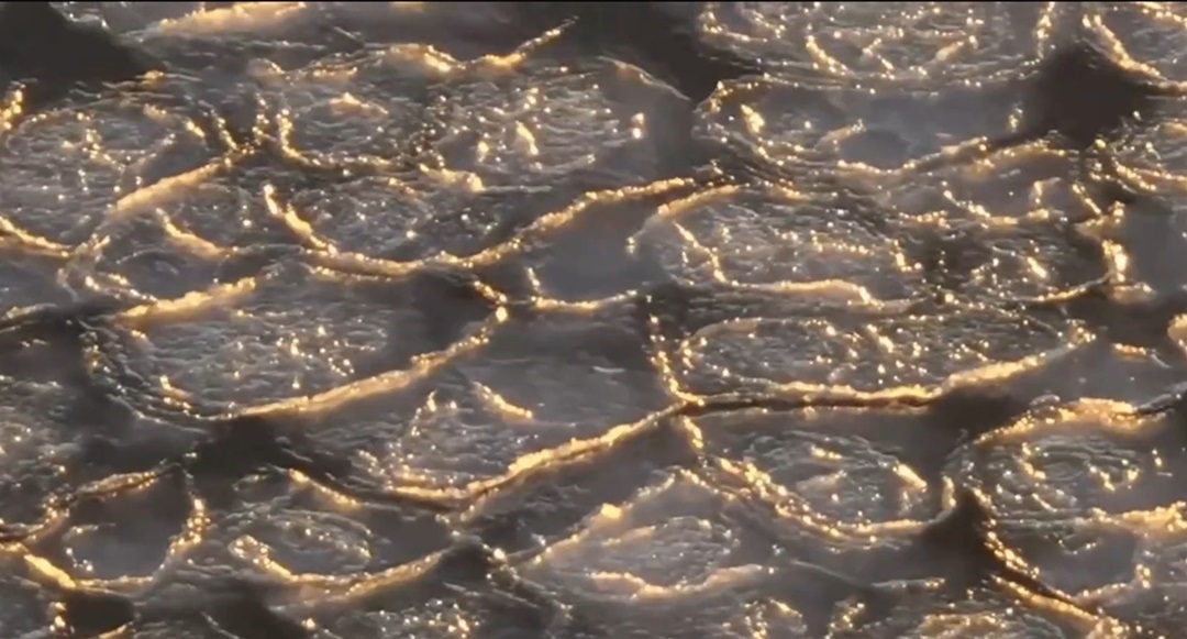 農歷二月二日,“雪龍2”從南極返回祖國的途中,路遇最美海冰——“龍鱗”冰。在夕陽的照射下,每一瓣“龍鱗”冰都勾上了金邊。