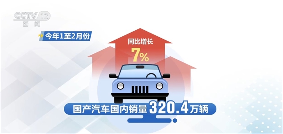數(shù)據(jù)顯示,今年1至2月份,國產(chǎn)汽車國內(nèi)銷量320.4萬輛,同比增長7%。其中,國產(chǎn)新能源汽車國內(nèi)銷量102.5萬輛,同比增長34.3%。專家指出,從1至2月份運行情況看,汽車產(chǎn)銷的總體保持平穩(wěn),同比增速呈現(xiàn)較快的增長,預(yù)計全年增速將呈現(xiàn)前高后低的發(fā)展勢態(tài)。