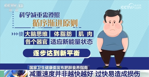 指南指出,科學(xué)減重需遵照循序漸進(jìn)的原則,使大腦思維、體脂肪、肌肉和各個(gè)器官適應(yīng)新能量狀態(tài),逐步達(dá)到新平衡。減重速度并非越快越好,過快的減重速度易對(duì)機(jī)體器官組織造成損傷,甚至危及生命。較為理想的減重目標(biāo)應(yīng)該是6個(gè)月內(nèi)減少當(dāng)前體重的5%—10%,合理的減重速度為每月減2公斤—4公斤。