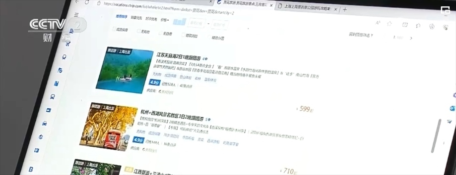 記者在某旅游平臺(tái)官網(wǎng)首頁(yè)搜索發(fā)現(xiàn),不少旅游產(chǎn)品都打上了“踏青賞花”“賞花特惠”等標(biāo)簽。無論是短途一日游,還是長(zhǎng)線賞花游,銷量都十分可觀。