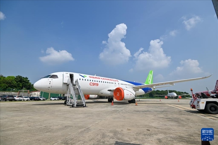 3月13日,中國國產(chǎn)商用飛機C919大飛機在馬來西亞雪蘭莪州的蘇丹阿卜杜勒·阿齊茲·沙阿機場作靜態(tài)展示。新華社發(fā)(張紋綜攝)