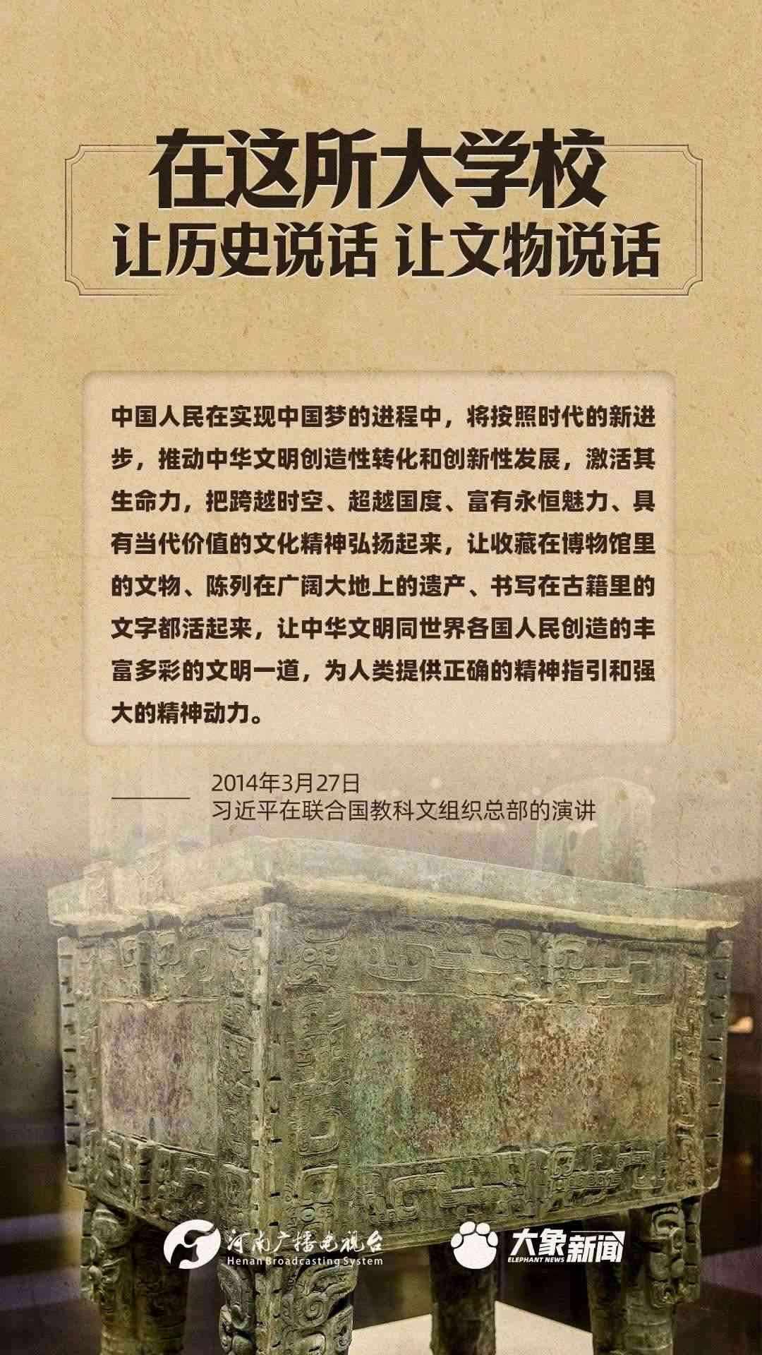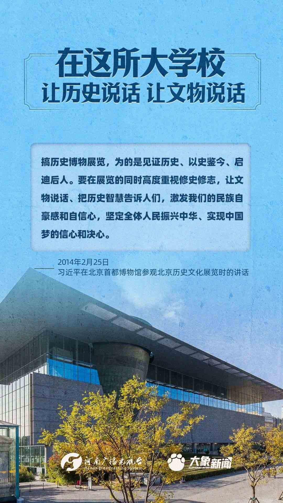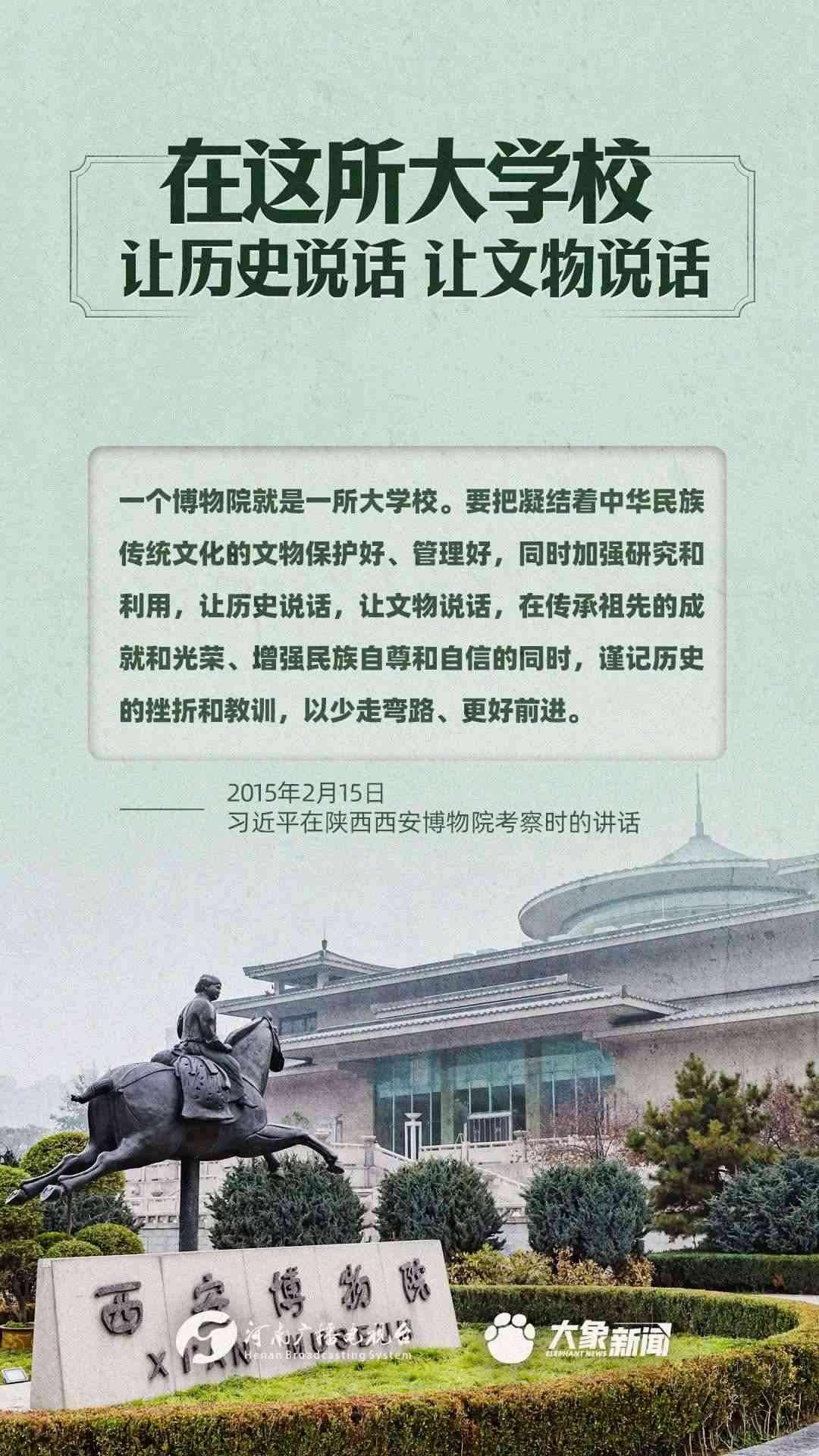 習(xí)近平總書記一直高度重視博物館工作,多次作出重要講話,強調(diào)“一個博物院就是一所大學(xué)校”,指出“讓歷史說話,讓文物說話”,要求“守護好、傳承好、展示好中華文明優(yōu)秀成果”等等,金句連連。大象新聞進行了認真梳理,邀您一起學(xué)習(xí)。