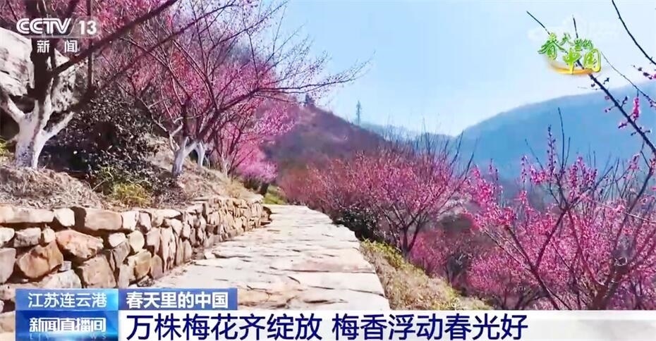 春日暖陽(yáng)中,江蘇連云港花果山漫山遍野的梅花悄然綻放,紅梅花開(kāi)似海、明媚驚艷,遠(yuǎn)看如云霞燦爛,近聞?dòng)杏浒迪恪;ü矫穲@經(jīng)過(guò)多年的栽植培育,有紅梅、美人梅、綠萼梅等梅樹(shù)2萬(wàn)多株。
